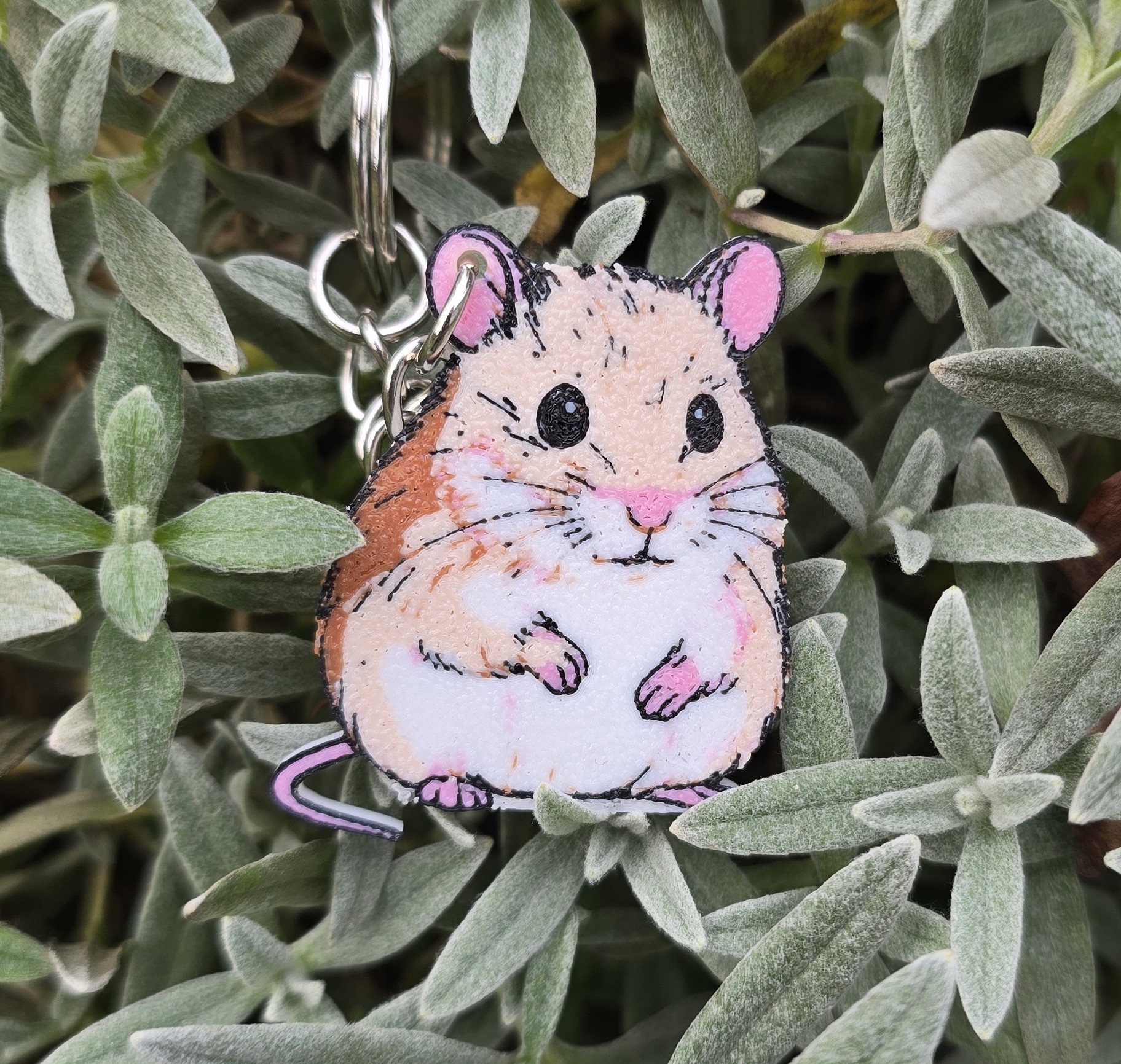 Plastová klíčenka (3D tisk) s motivem křečíka čínského.